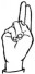 На ћирилици написано БОЈАН КОМНЕНОВИЋ састоји се из 15 слова [?]. Исписано ћириличном једноручном азбуком за глувонеме: